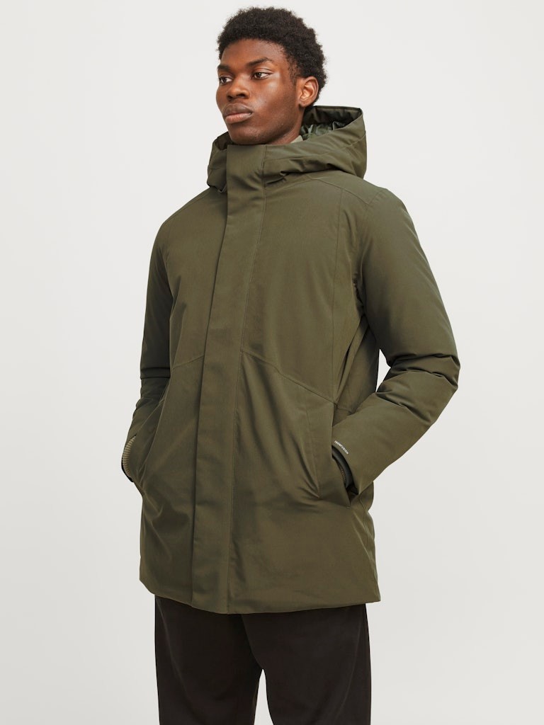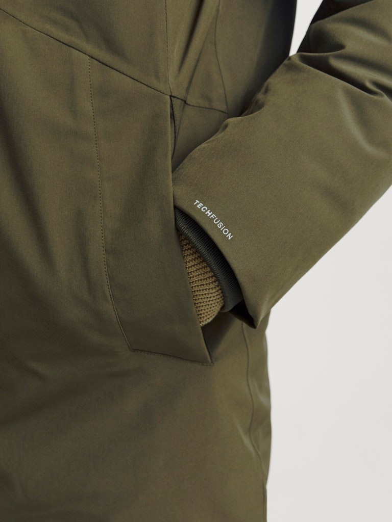 Pershkrimi : Gender: Male Manufacture: Woven Manufacture Detail: Plain weave Style Type: JACKET Composition: 90% Polyester, 10% Elastane Shell: 90% Polyester, 10% Elastane Lining: 100% Recycled Polyester Padding: 100% Recycled micro fiber Padding weight: 295g Padding fiber length: 25mm mixed with 32mm Padding bag: 100% Polyester Padding bag weight: 27g