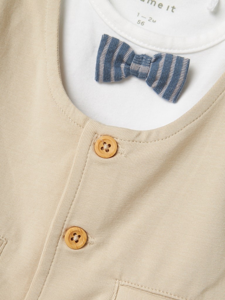 Pershkrimi : Gender: Male Manufacture: Circular Knit Manufacture Detail: Rib Style Type: BABY GARMENT Composition: 95% Cotton - Organic, 5% Elastane