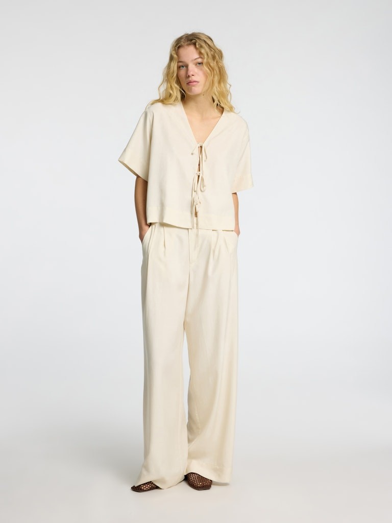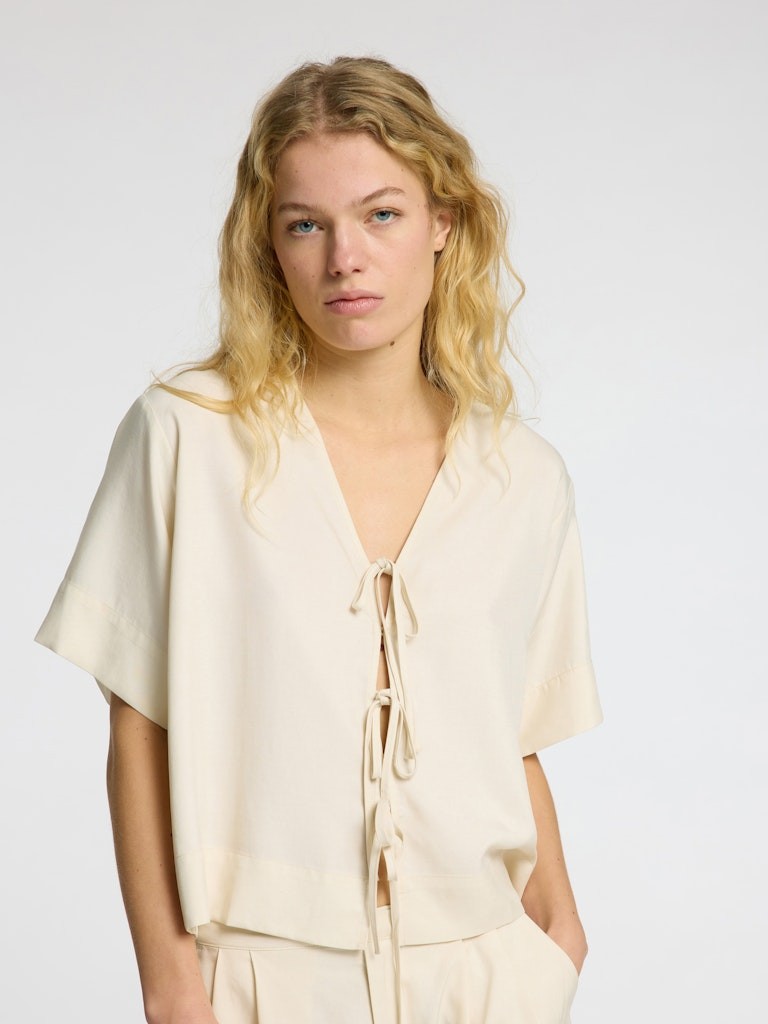 Pershkrimi : Gender: Female Manufacture: Woven Style Type: BLOUSE - OPEN NECKLINE Composition: 97% Lyocell TENCEL™, 3% Linen AS ISBAH
